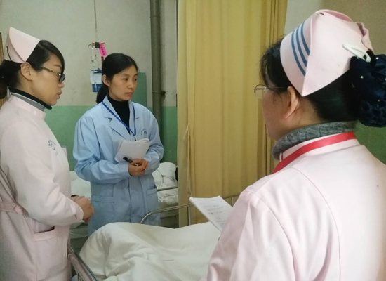督导现场,专家组组长,株洲市三三一医院护理部主任罗敏带领3位专家对我院《湖南省护理事业发展规范(2017-2020年)》实施情况情况进行了全面细致的现场检查。专家们分组来到了心血管内科、骨外科、肿瘤科、胸脑外科、妇科、普外科、肝胆外科、神经内科等科室,就护理人力配置、病区环境设置与仪器设备管理、患者安全、护理不良事件、药品、合理排班、人文关怀、日常护理、诊疗护理、分层培训、护士岗位胜任能力等护理相关工作进行了现场查看。专家们还与护士及患者进行了现场交流,并对住院患者就医体验与满意度进行了问卷调查。
