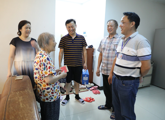 王自明、党委副书记兼纪委书记刘可安和离退休第二党支部书记张志鹏走访慰问了老党员、离退休干部张淑纯同志。王自明一行代表医院党政对以张淑纯为代表的老党员表示感谢,祝愿她身体健康,生活幸福,希望老党员们继续关心和支持医院发展。张淑纯同志感谢医院党政的关怀,盼望着医院发展再创辉煌。