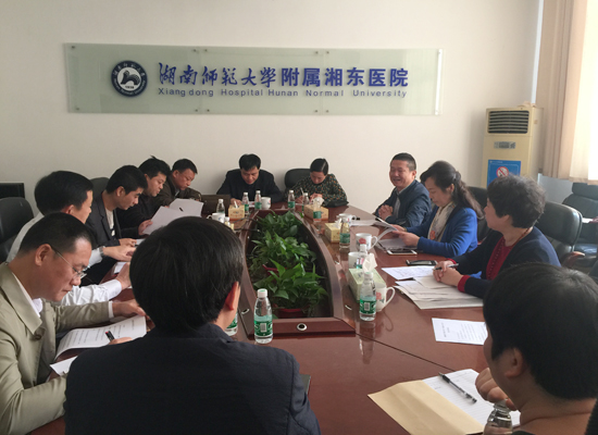 2017年11月7日上午,湖南省卫计委医政医管处副调研员于艳萍率省防盲办执行主任、省人民医院眼科主任段国平;省防盲办秘书、“复明10号”项目负责人吴丽玲及湖南省人民医院社会医学部杨方一行来我院眼科进行实地考察,并就拟合作的中国复明扶贫流动眼科手术车“复明10号”项目进行对接。分管副院长周春芳主持对接会,市卫计局医政股股长周江选、人社局副局长陈正宇、市残联副主席刘建成、市扶贫办重点项目组负责人陈湛参加了对接会。