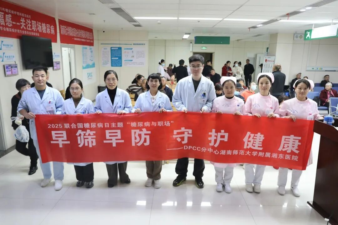 2025年11月14日是第19个世界糖尿病日,今年的主题是“糖尿病与幸福感”,倡导“提高认知,重在行动”。数据显示,糖尿病对职场人群影响深远:全球每10位糖尿病患者中约有7位处于工作年龄;每4位中约有3位伴有心理问题;每5位中约有4位存在糖尿病倦怠。值得注意的是,职场人群中每10人就有1人面临糖尿病风险,但他们常因工作繁忙而忽视早期信号。为将“早筛早查”理念落到实处,我院内分泌科联合神经内科,以“早筛早查,守护健康——糖尿病与幸福感,关注职场糖尿病”为主题,在门诊开展了一场集筛查、科普、义诊于一体的健康公益活动。