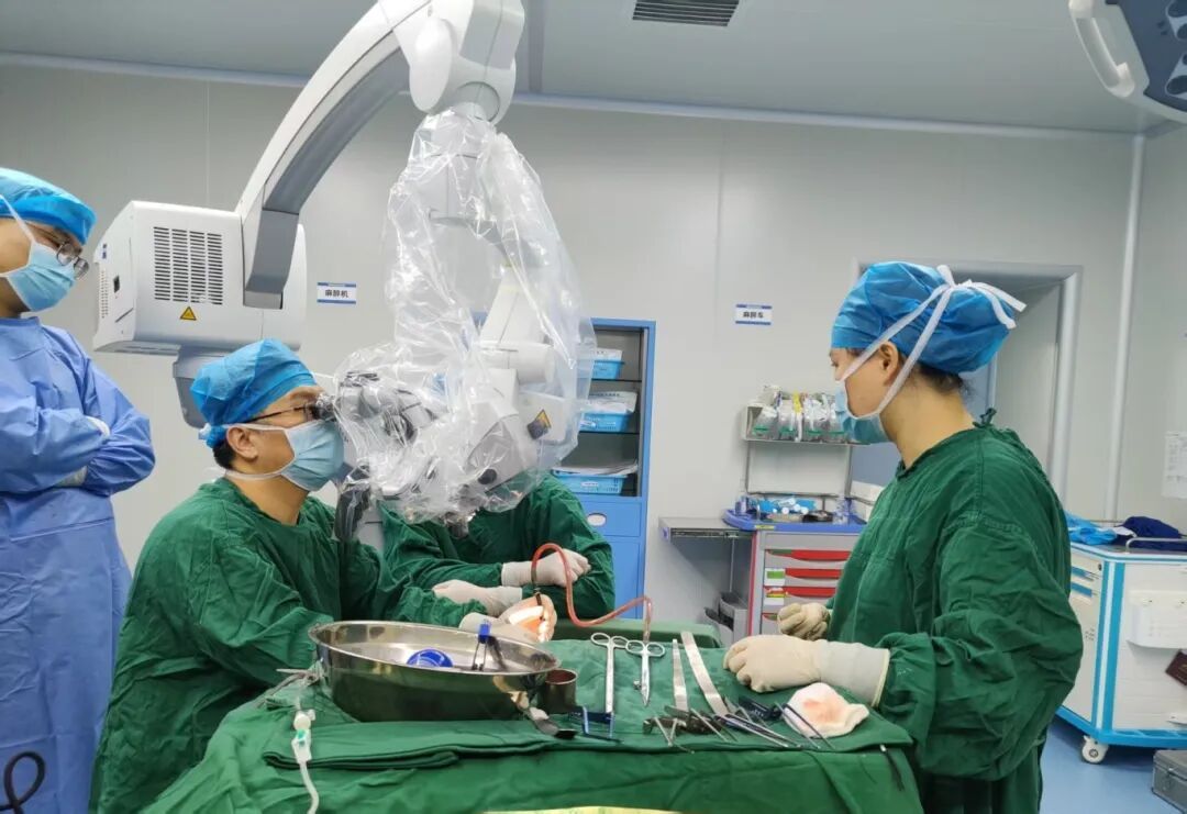 近日,我院神经外科团队成功为一名后颅窝占位性病变患者完成高难度显微镜下脑膜瘤切除术,完整切除紧邻脑干的巨大肿瘤。手术的成功实施,标志着我院神经外科高难度手术能力再上新台阶。