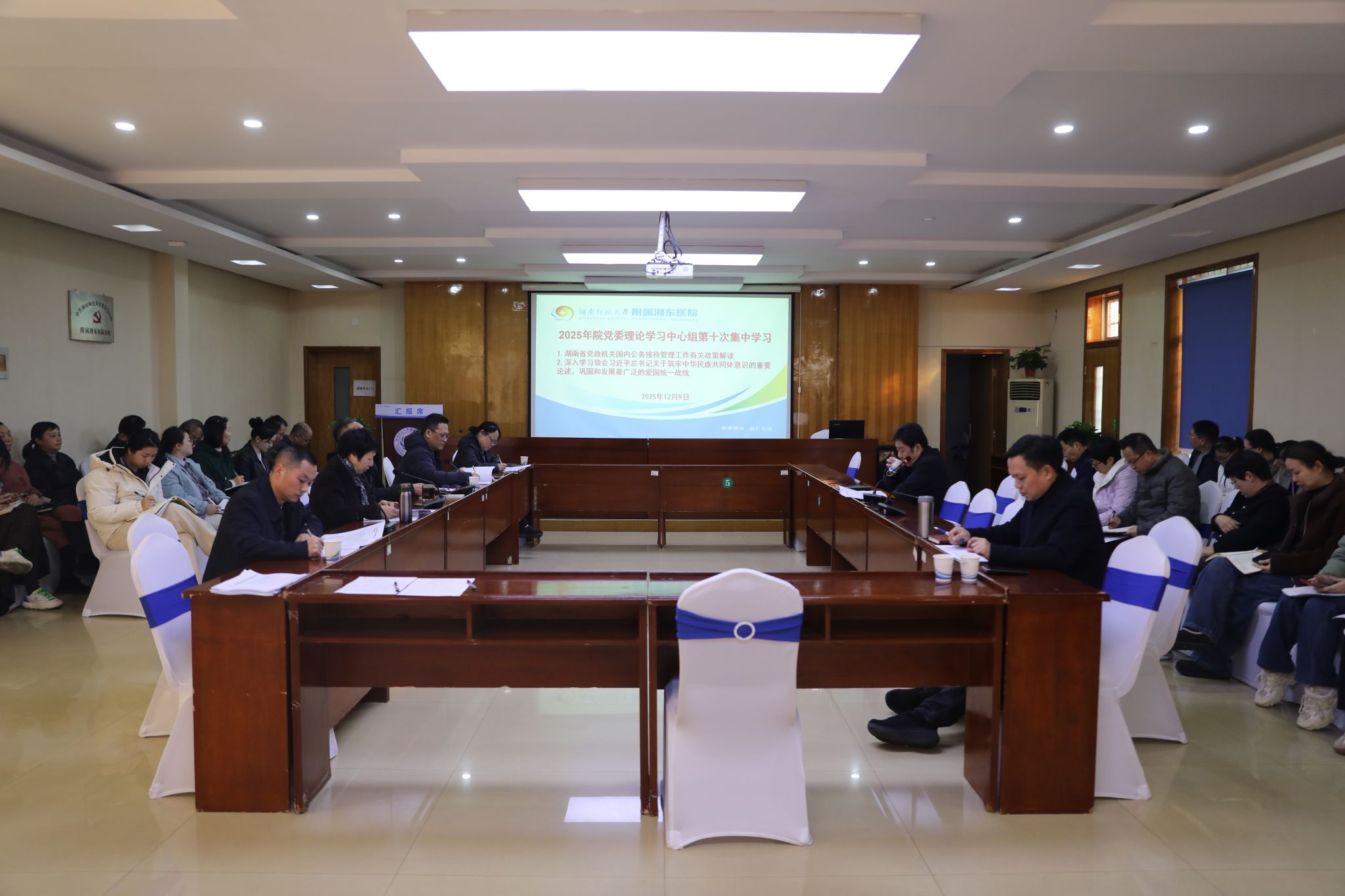 汤建国围绕“学习党的二十届四中全会精神”发言。他指出,全院上下要切实把思想和行动统一到全会精神上来,深刻认识“十五五”时期的重大战略机遇。他强调,抓紧启动并扎实推进医院“十五五”发展规划工作是当前重要任务;要以全会精神为指导,聚焦提升医疗服务质量、强化学科人才建设、优化运营管理效能、加强智慧医院建设等重点工作,为医院未来五年高质量发展奠定坚实基础。