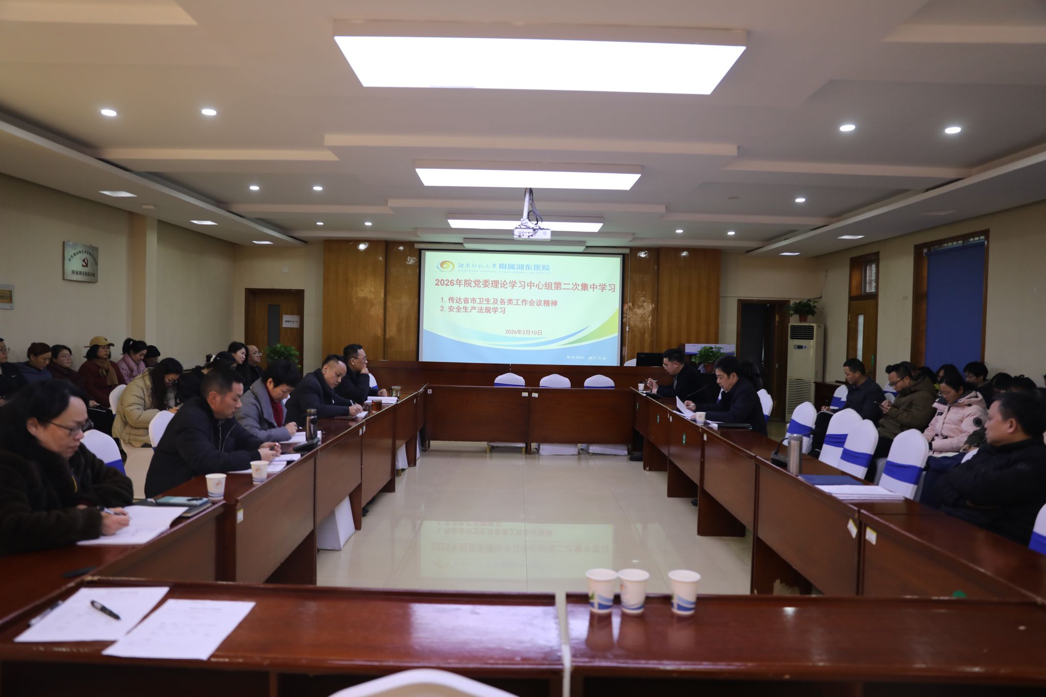 党委书记汤建国传达学习了全省卫生健康工作会议精神。他从深化医药卫生体制改革、提升公共卫生核心能力、推进中医药服务全面发展、加快教育科技人才一体发展、加强宣传引导与作风建设等方面着重解读了2026年重点工作。