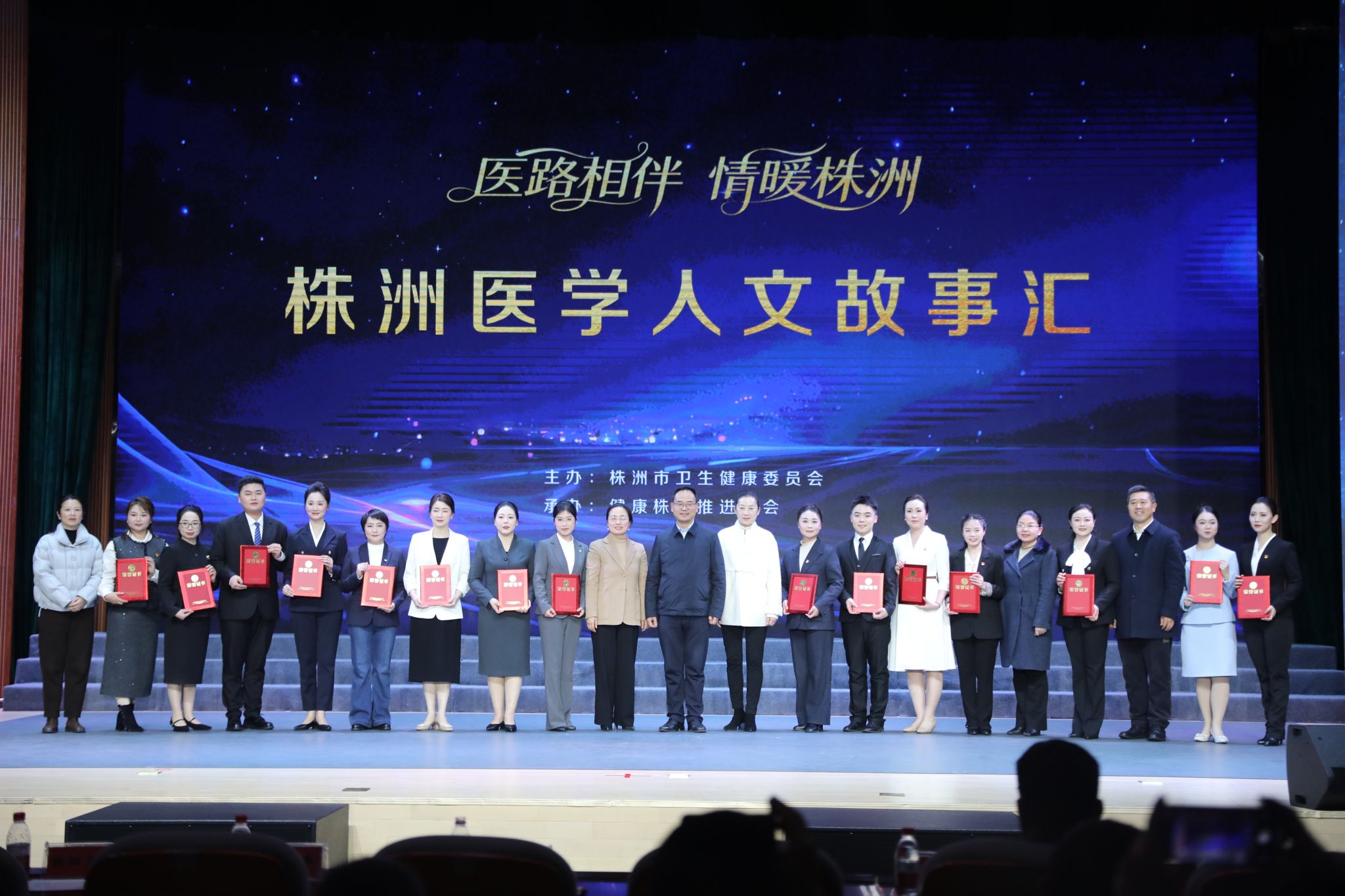 为深入践行《医学人文关怀提升行动方案(2024-2027年)》,推动株洲市医学人文教育走深走实,1月22日晚,由市卫健委主办、健康株洲推进协会承办的“株洲医学人文故事汇”在市第二工人文化宫温暖开讲。我院选送的作品《以“髓”为炬,照亮生命》从全市百余篇参选故事中脱颖而出,成功入围15个经典案例(本活动不评奖),成为我院弘扬红医精神、深耕人文关怀的生动注脚。株洲市委副书记、市委政法委书记何恩广、市人大常委会副主任欧阳瑞丰、市政协党组副书记、副主席杨小幼等市领导出席本次活动。